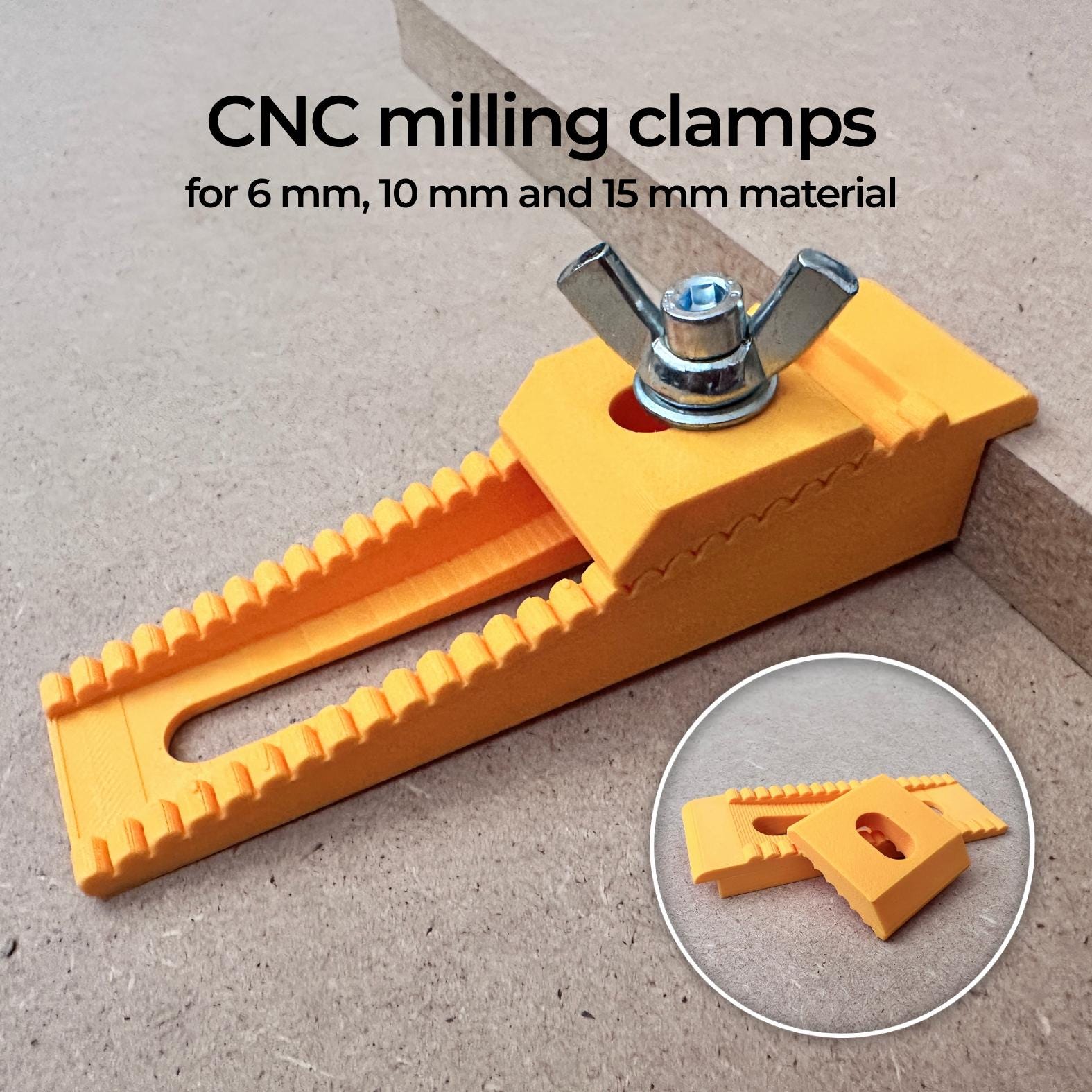 Deze 3D-geprinte CNC frees klemmen zijn onmisbaar voor wie nauwkeurig en veilig wil werken aan een freestafel. De lage vasthoud klemmen met bout kanaal zorgen voor zowel zijwaartse als neerwaartse druk op het werkstuk, zodat alles stevig op zijn plek blijft liggen. Deze CNC klem is ideaal voor houtbewerking en past perfect in elk systeem met een sleuf of T-track.