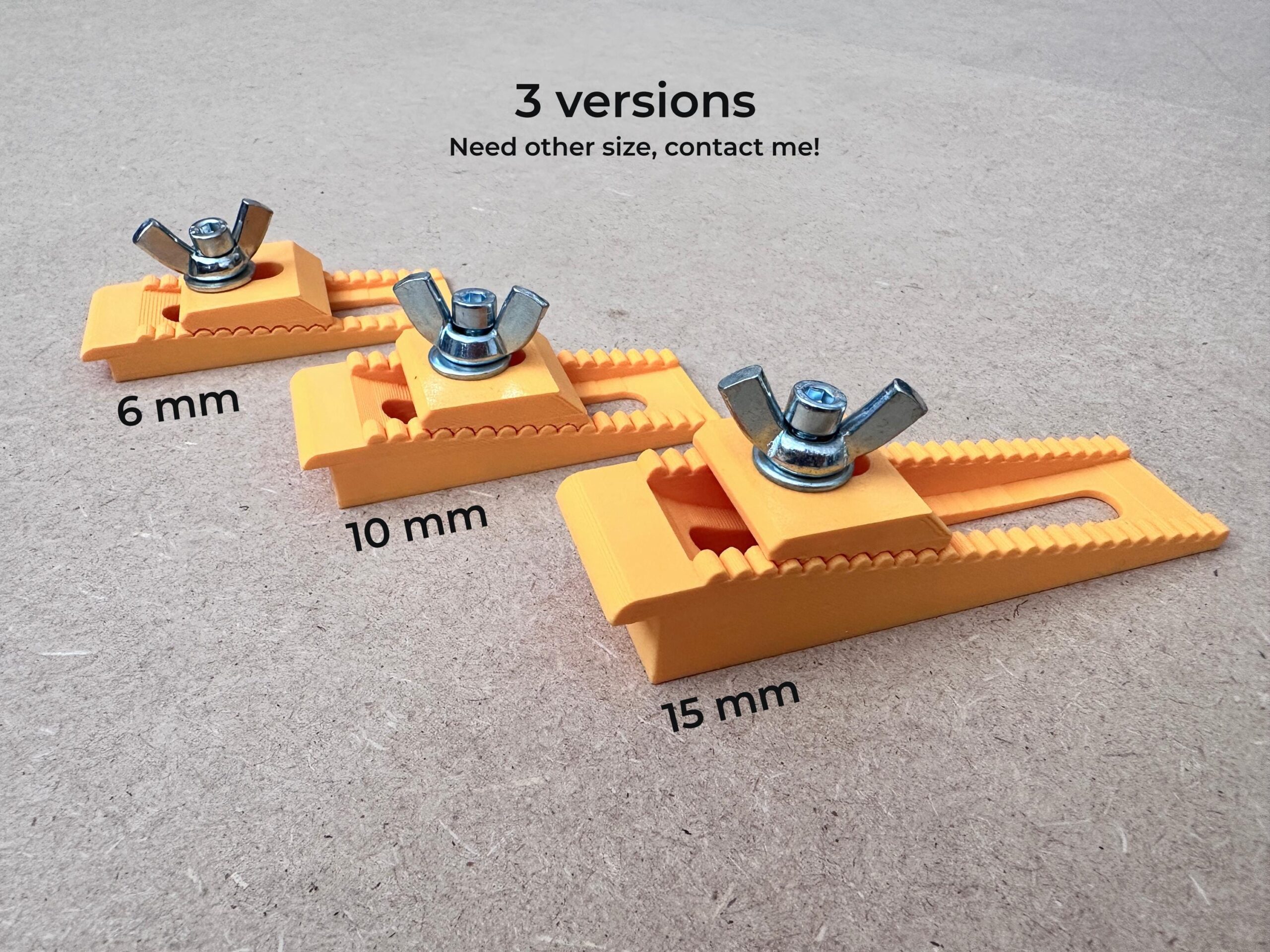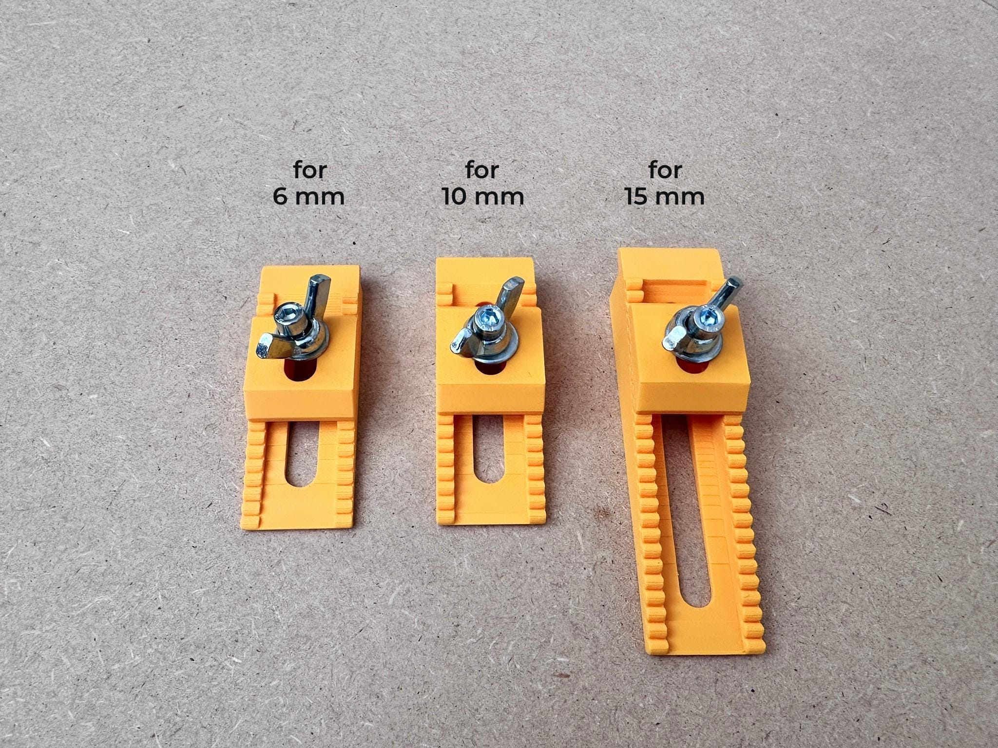 Je kunt deze CNC klemmen bestellen in verschillende kleuren en zijn geschikt voor verschillende plaatdiktes: 6 mm, 10 mm en 15 mm. Zo kies je eenvoudig de juiste vasthoud klem voor jouw toepassing. Deze veelzijdige werkstuk klemmen zijn niet alleen praktisch en functioneel, maar dankzij het strakke ontwerp ook een nette toevoeging aan je werkplek.