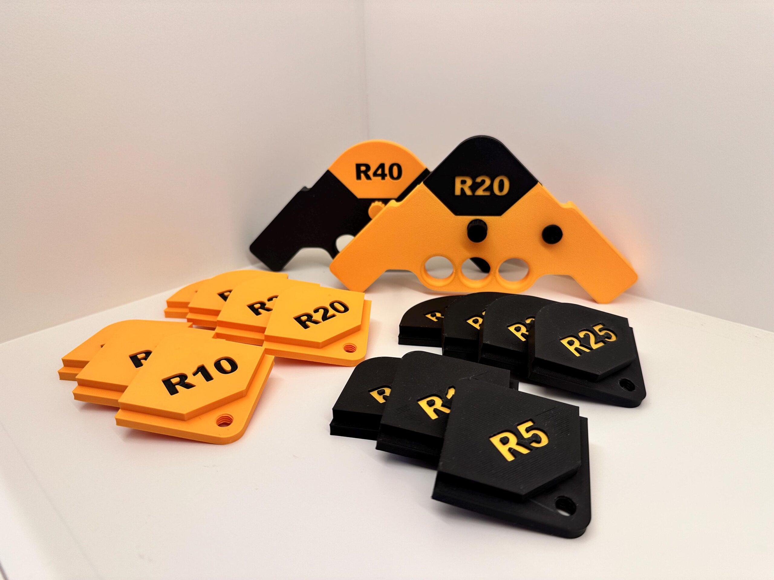 Maak prachtige afgeronde hoeken met de Corner Radius Jig Set! Deze set bevat 8 verschillende hoeken, variërend van R5 tot R40, en is een must-have voor elke houtbewerker die op zoek is naar precisie en flexibiliteit. Dankzij de handige opzetstukken kun je eenvoudig en snel van radius wisselen, wat zorgt voor een professioneel resultaat bij elk project. Wordt geprint in PETG in de DeWalt kleuren! de koffer wordt in PLA geprint. Liever andere kleuren, stuur vooral een berichtje.