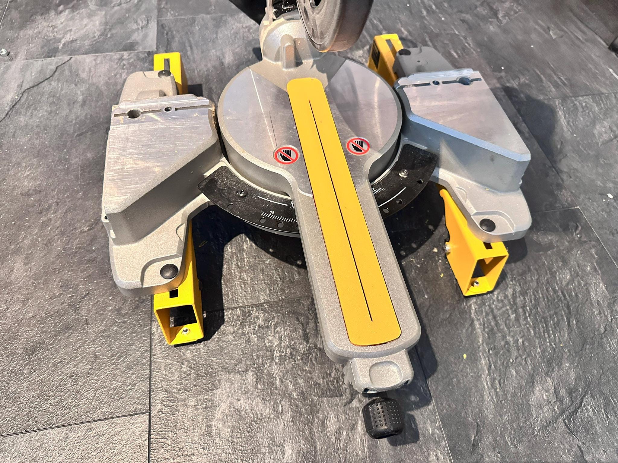 Dit product is geen origineel onderdeel van de DeWalt afkortzaag en wordt niet geleverd door de fabrikant. Door dit product te kopen en te gebruiken, ga je akkoord met het nemen van volledige verantwoordelijkheid voor je eigen veiligheid tijdens het gebruik ervan. Ik ben niet aansprakelijk voor eventuele verwondingen of schade aan eigendommen. Je moet je gereedschap goed kennen voordat je dit product gebruikt.