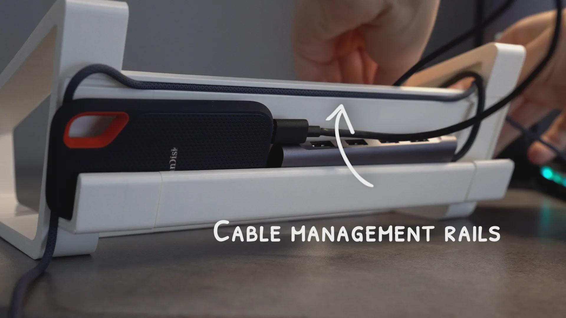 Deze laptop standaard is van lichtgewicht en compact, waardoor hij gemakkelijk mee te nemen is. Dankzij het slimme kabelmanagement organiseer je eenvoudig al je laad- en data-kabels, wat zorgt voor een opgeruimd bureau en betere luchtcirculatie voor je laptop. Standaard is demonteerbaar waardoor hij compact opgeborgen kan worden.