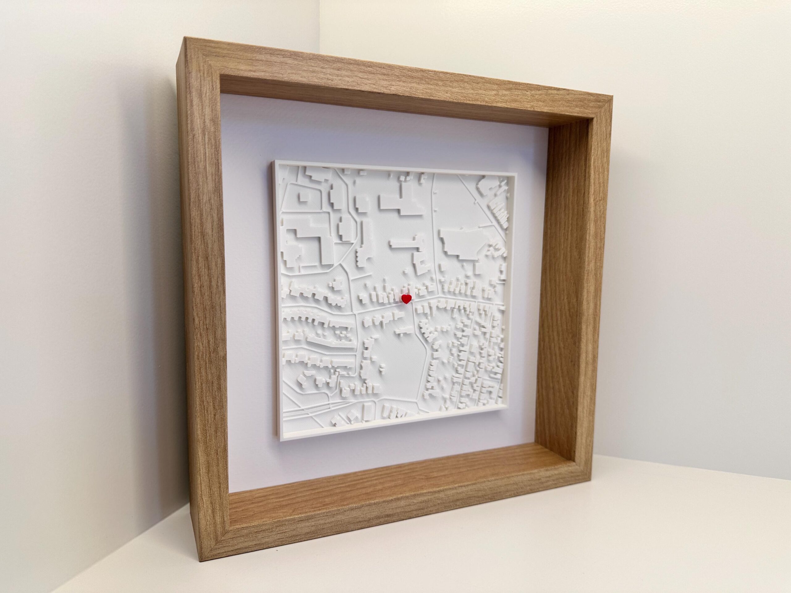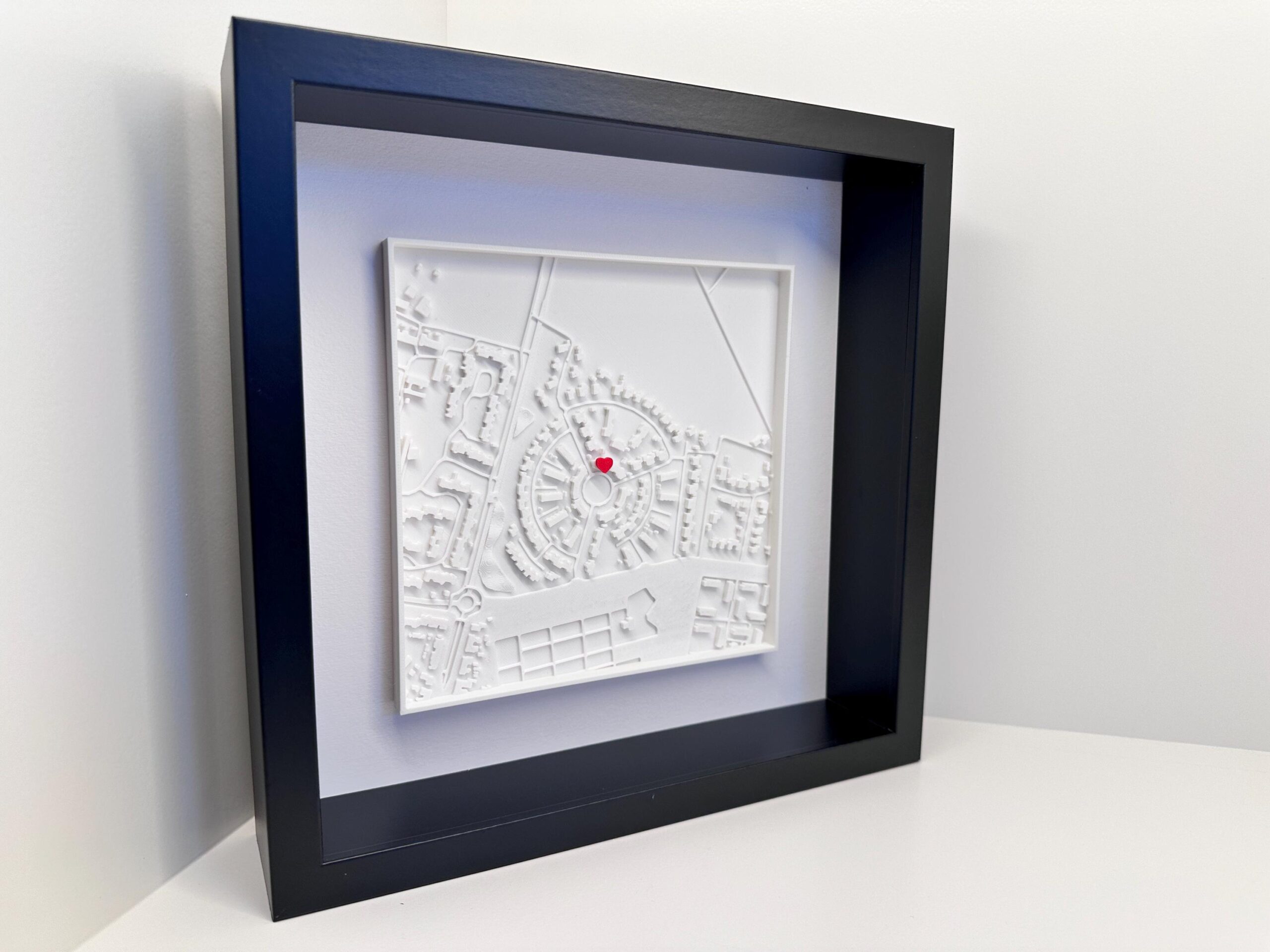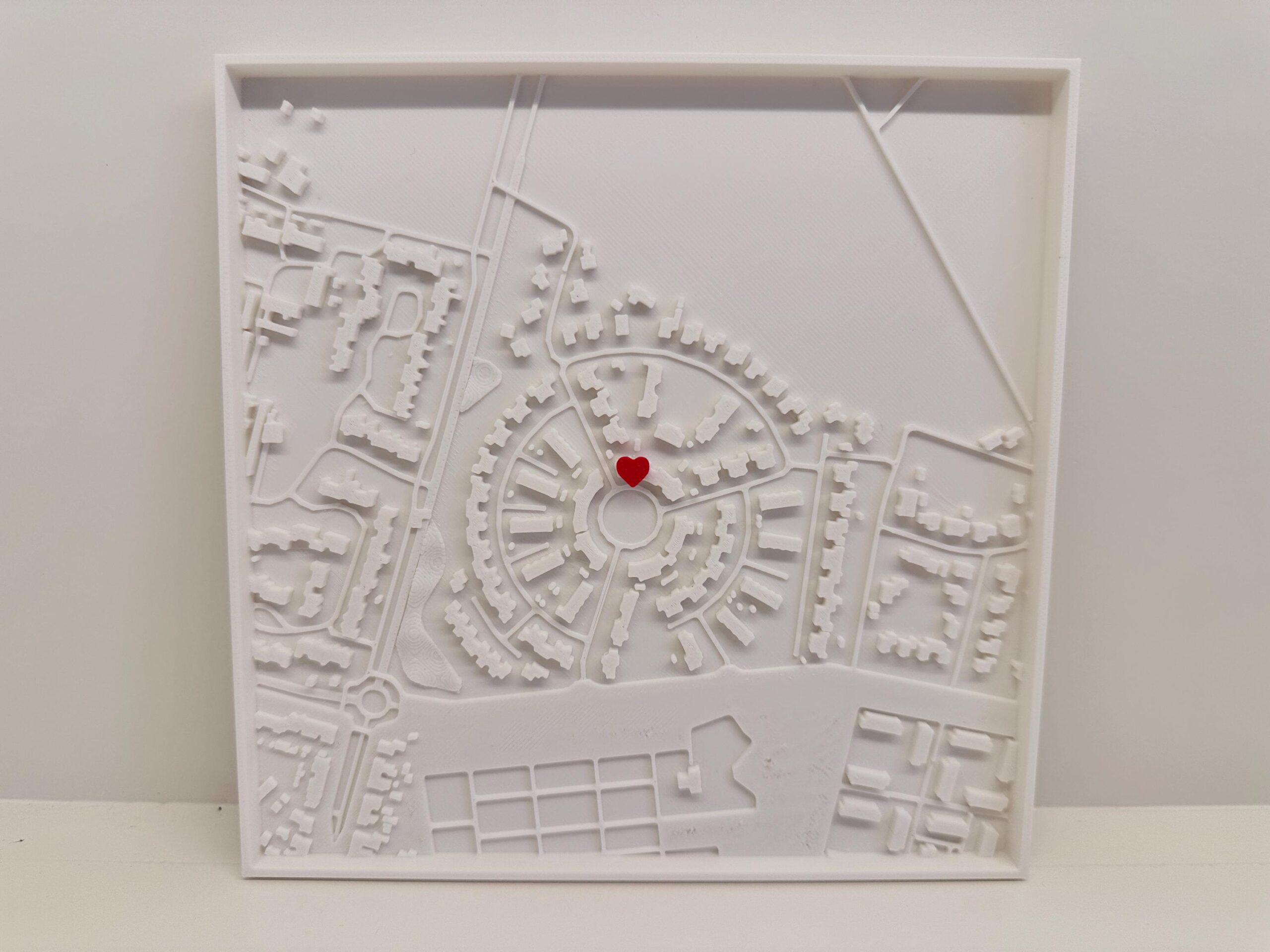 De 3D-geprinte kaart toont met precisie de straten en wijken van jouw gekozen locatie, en biedt een opvallend decoratiestuk dat elke ruimte een speciaal verhaal meegeeft. Of het nu gaat om de plek waar je elkaar hebt ontmoet, je eerste woning, of een favoriete vakantiebestemming, dit kunstwerk herinnert je dagelijks aan bijzondere momenten. Het strakke en minimalistische ontwerp past perfect in elke moderne of klassieke woonstijl.